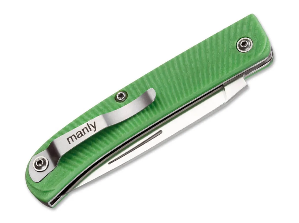 Based On The Comrade Model (Fully Made In Bulgaria), The Young Manly Brand Has Created A Compelling Concept That Must Be Viewed As A Rousing Success For Its Introduction To The Knife Market. The D2 Blade Steel Has Been Hardened To 59-61 Hrc (=1.2379), Promising Durability And Edge-Holding. The Flat-Ground Blade Has A Nail Groove And Features An Appealing Black Satin Finish. Solid Steel Liners Support 3D-Milled Handle Scales Made From Green G10, Whose Radial Texture Is Not Only Visually Appealing But Also Provides A Very Secure, Non-Slip Grip. A Stepped Slip Joint Is Used As The Mechanism, Which Uses A Strong Spring To Engage The Blade In 4 Steps As A Way To Increase User Safety. Stainless Steel Clip (Tip-Up) For A Comfortable Carry. A Solid Utility Knife With Premium Materials For An Unbeatable Price.