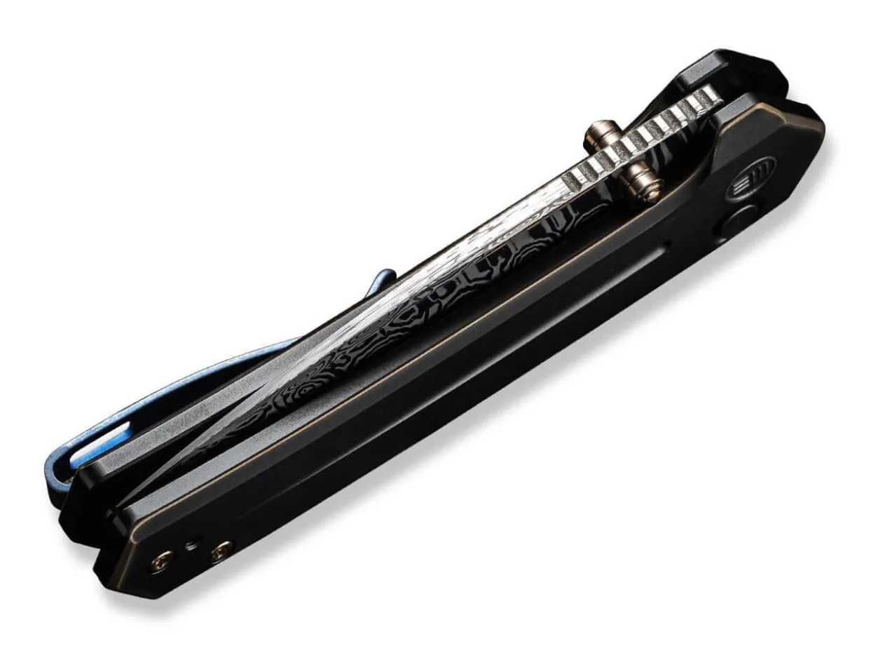Only Recalcitrant Cutters Are Likely To Consider The We Knife Culex (Eng: Mosquito) A Nuisance. Because The Mythical Blade Of Heimskringla Damascus And The Bronze-Colored Titanium Handle Alone Will Trigger An Itch In The Reward Center Of The Brain, Which Is Why The Captivating Edc Folder With Thumb Pin And Button Lock Will Find Great Appeal. With Clip (Tip-Up/R).