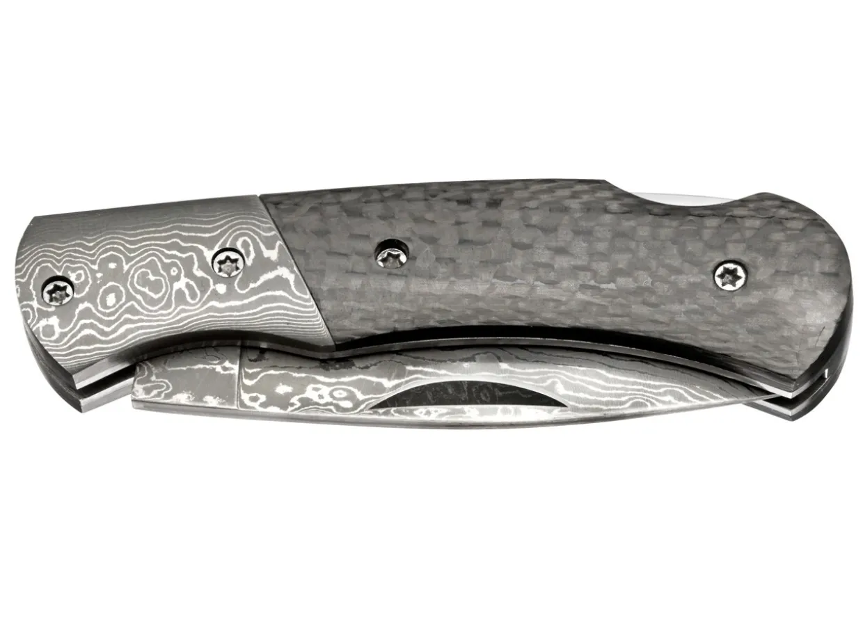 The Dc Unifies Two Sophisticated Materials In One Knife, As Well As Classical And Modern Elements. The Real Damascus Steel Blade Made From 71 Layers Of Steel In Combination With A Real Damascus Steel Bolster And Tough Carbon Fiber Make This Knife An Elegant Companion For Everyday Use. With Back Lock Mechanism.