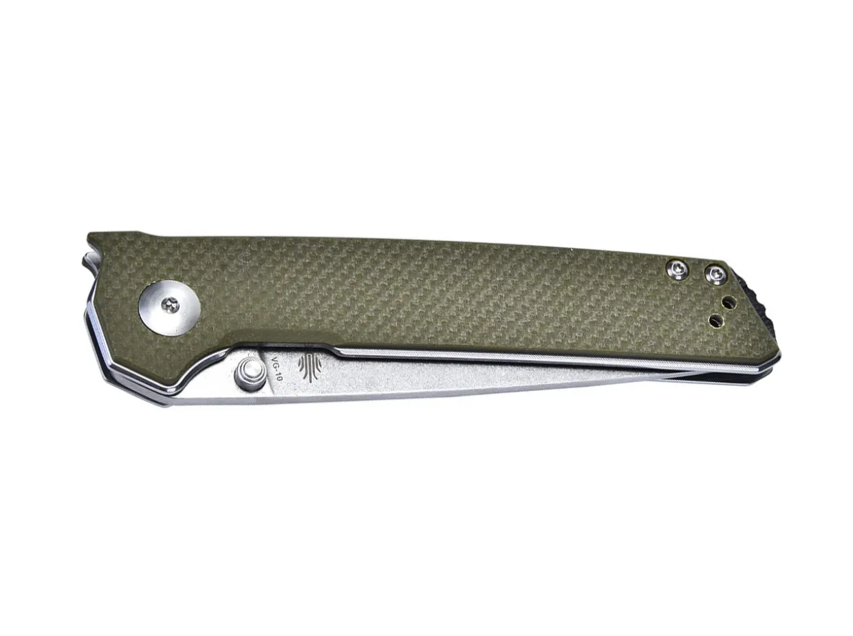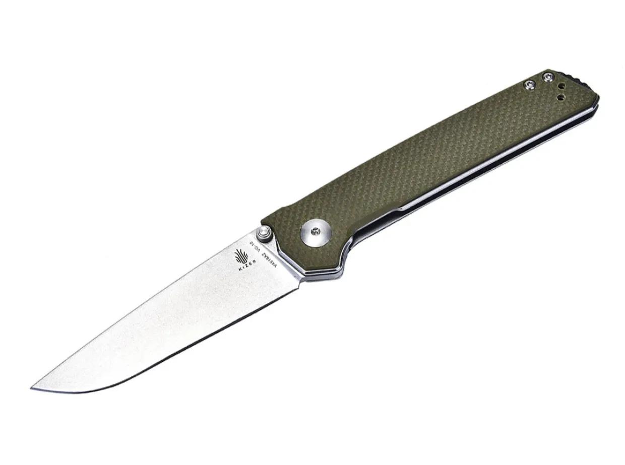 The Kizer Domin Is A Practical, Simple Edc With Structured Green G10 Handle Scales And A Ball-Bearing Vg-10 Blade With Stonewash Finish. It Is Opened With A Thumb Stud And Locked By A Linerlock. With Lanyard Hole And Reversible Clip (Tip-Up/L-R).