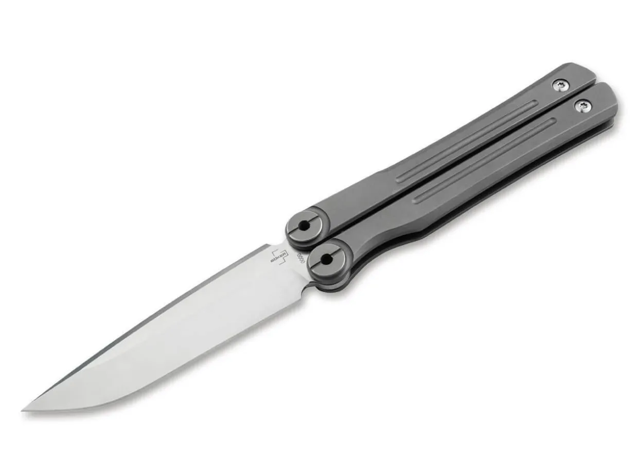 In Der Fraktion Der Balisong Messer Nimmt Das Boker Plus Faction Von Jakub Wieczorkiewicz Eine Besondere Rolle Ein. Geoffnet Prasentiert Es Sich Wie Ein Elegantes Gentleman Messer, Da Auf Die Fur Diese Messerart Ublichen Aussparungen Im Griff Verzichtet Wurde. Stattdessen Setzt Der Messerdesigner Von Poltergeist Works Beim Boker Plus Faction Auf Masse Wie Auf Klasse. Ausgewogen Bei Der Nutzung Und Schwungvoll Beim Offnen Vermittelt Der Edle Titangriff Mit Bead Blast Finish In Jeder Lage Einen Souveranen Eindruck In Der Hand. Die Klinge Aus Pulvermetallurgischem Cpm-S-35Vn Meistert Leichtfusig Selbst Schwierige Schneidarbeiten Und Ist Mit Einer Dekorativen Fehlscharfe Am Klingenrucken Versehen. Der Deep-Carry-Clip (Tip-Up/R) Und Das Hochwertige Filz Etui Runden Die Alltagstaugliche Ausstattung Des Butterfly Messers Gelungen Ab.
