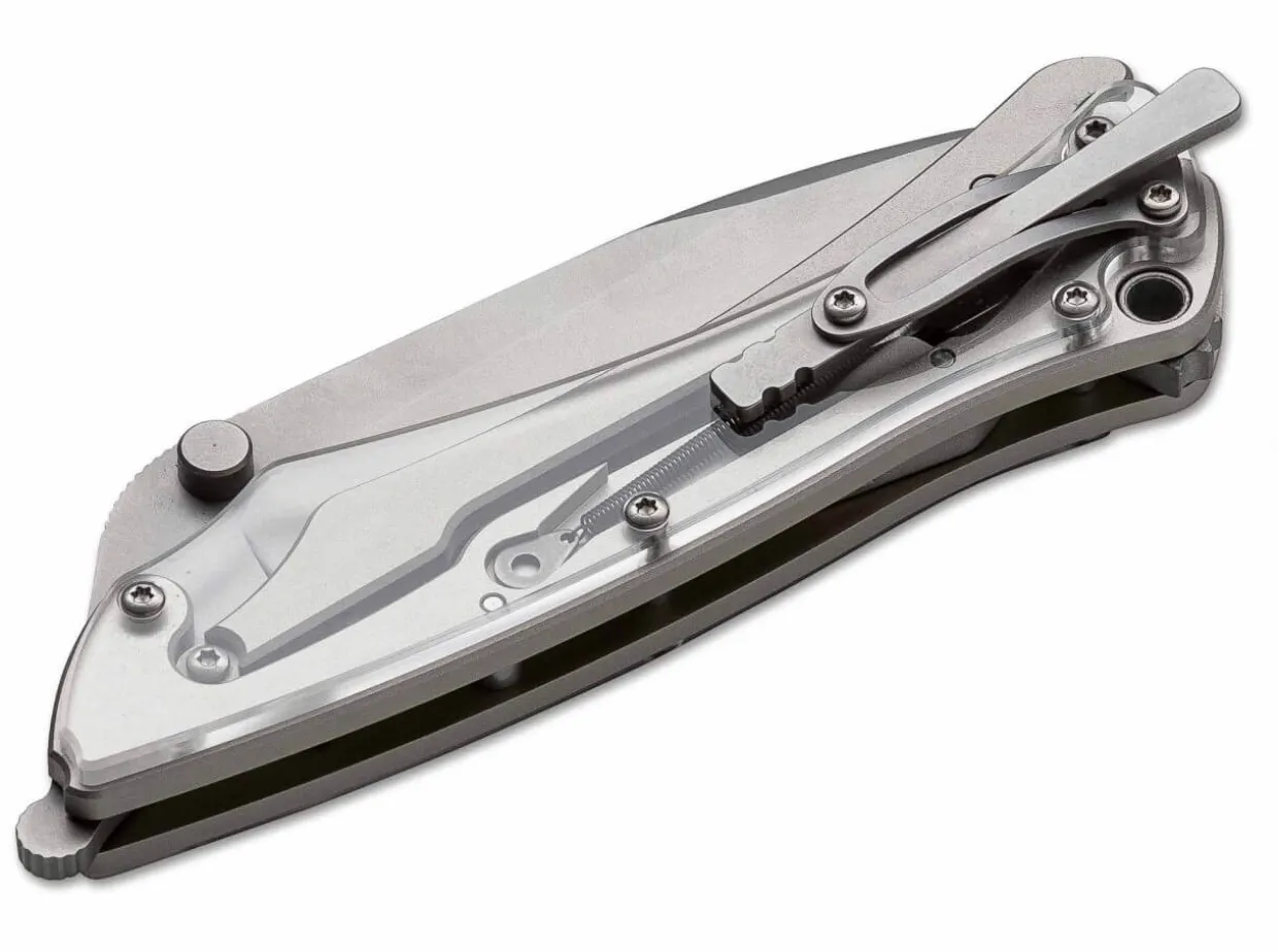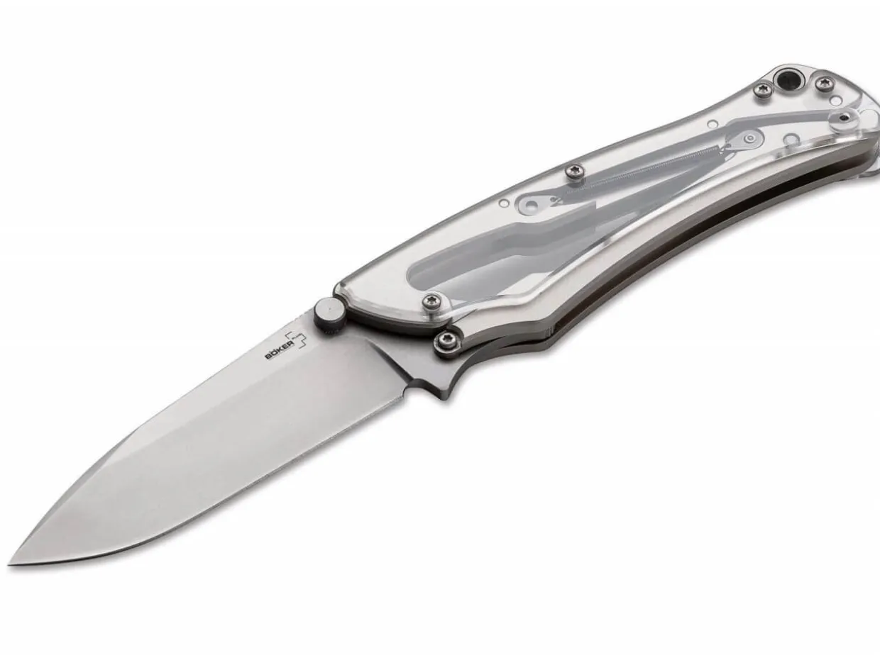 The Boker Plus Griploc Is One More Stroke Of Genius From Grant & Gavin Hawk, Father And Son Custom Knifemakers. This Elegant Pocket Knife Offers An Intelligent Handle Design, Consisting Of Several Parts, Which Holds The Blade Open As Long As You Hold The Knife In Your Hand. Just Release The Pressure On The Handle, And You Can Easily Close The Blade. Additionally, The Open Blade Can Be Permanently Secured By A Safety Slider Located At The End Of The Handle. The Elaborate Layout And Design Of The Lever Arm Mechanism Allows The Unique Handling And Is The Masterpiece Of This Construction. The Aus-8 Stainless Steel Blade Is Opened With The Flipper. This Unique New “Clear” Version Of The Original Griploc Was Originally Produced In A Very Small Quantity For Our Sales Force. But The Interest Was Overwhelming – Customers Were Thoroughly Intrigued By The Design Mechanics Showing How The Griploc Actually Performs. Not Only Can You Own A Working Knife, Now You Can Own A True Conversation Piece! Includes Pocket Clip.