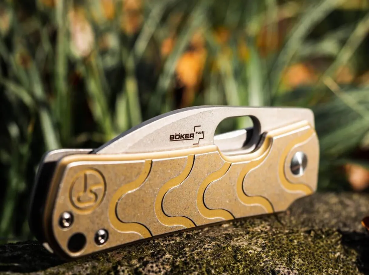 Serge Panchenko Already Has A Large Fan Base Thanks To His Lancer. The Boker Plus Gust Is Much Sturdier And More Practical, Designed As A Stainless Steel Framelock. The Thick Handle Scales With Their Typical Milled Pattern And Bronze-Colored Front Scale Convey A Feeling Of Comforting Solidity. The Blade Of The Gust Is Made From D2. The Entire Knife Has A Stonewash Finish, Giving It An Appealing Vintage Look. With Clip (Tip-Up).