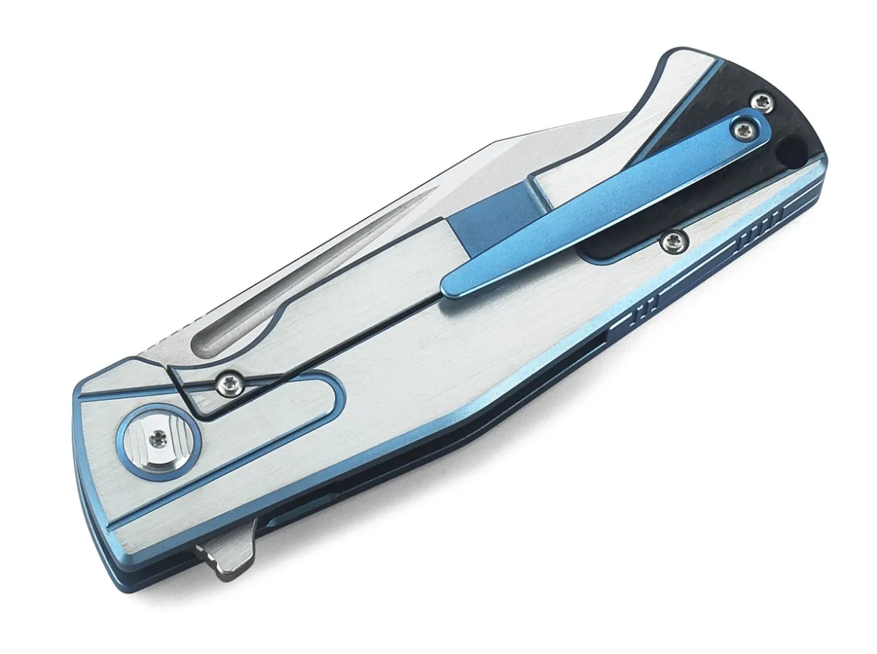 The Bestech Horus Is Equipped With An Exceptional Handle Made Of Titanium With Blue Accents As Well As A Carbon Fiber Inlay. The Clip-Point Blade Made Of Powder-Metallurgical Cpm-S-35Vn Is Opened Via Flipper And Secured By A Sturdy Framelock. With A Blue Clip (Tip-Up).