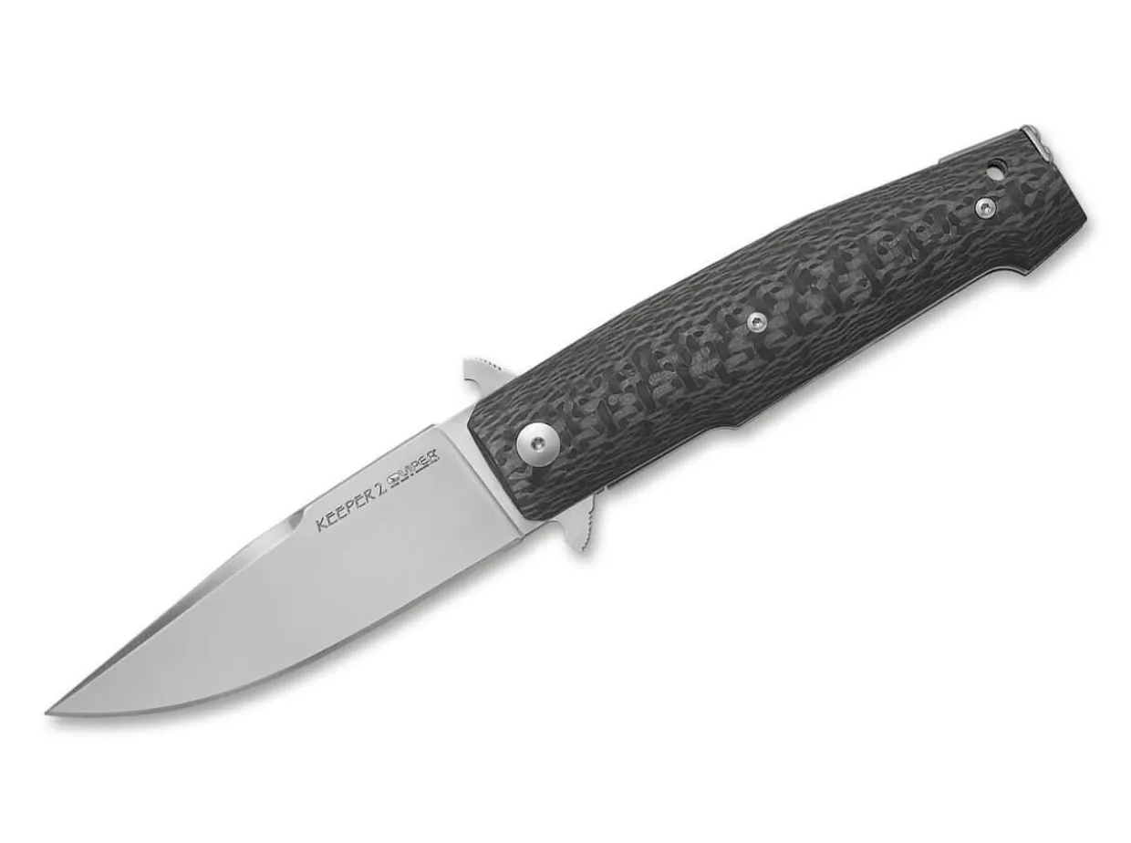 The Viper Keeper 2 Combines Classic Elements Of An Italian Stiletto With The Advantages Of Modern Pocket Knives. The Double-Sided Flipper Opens The Elmax Blade Silky Smooth And Provides Additional Safety As Hand Protection. The Liner Lock Based A.S.L.S. Mechanism (Automatic Safe Lock System) Acts As A Lock And Ensures Safe Working. The Step-Like Handle Is Made Of Black Carbon Fiber And Always Fits Perfectly In The Hand. With Lanyard Loop And Tip-Up Clip (R).