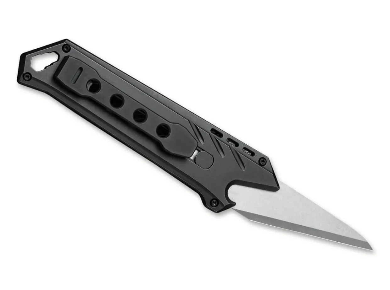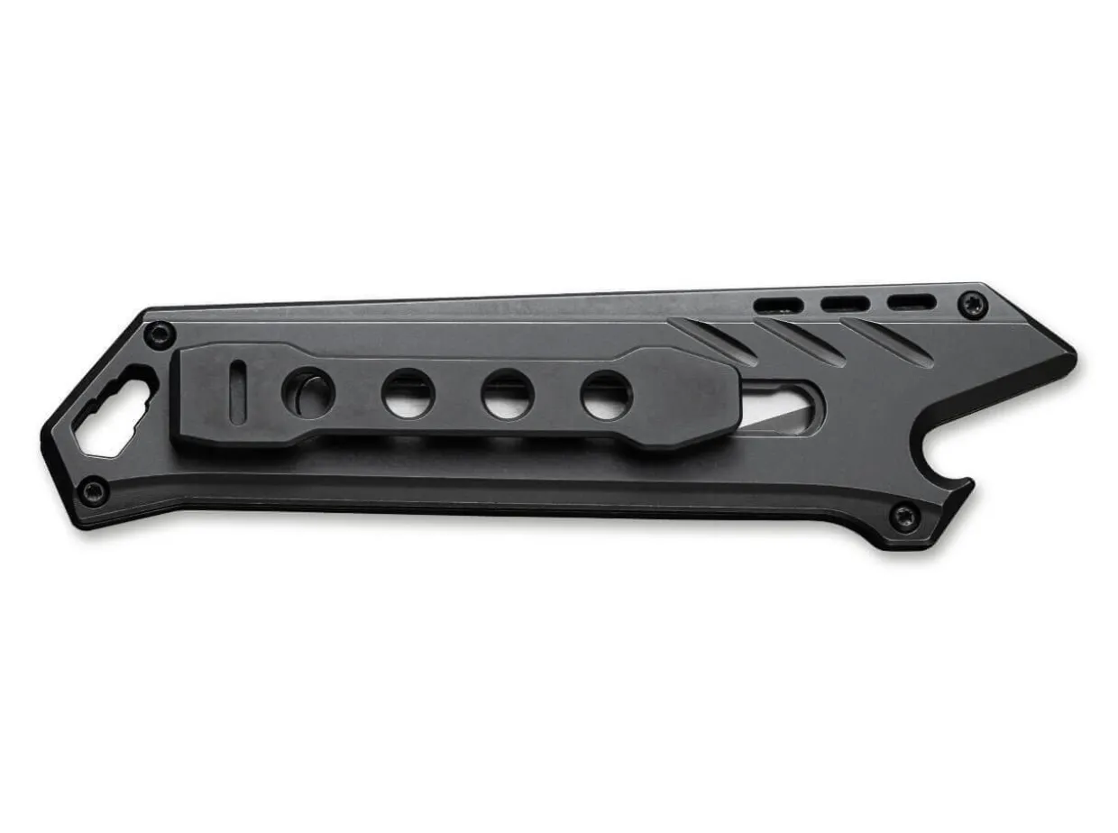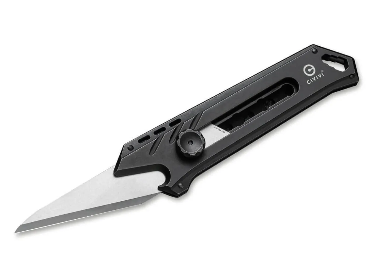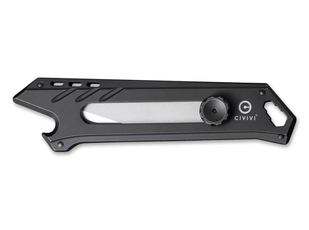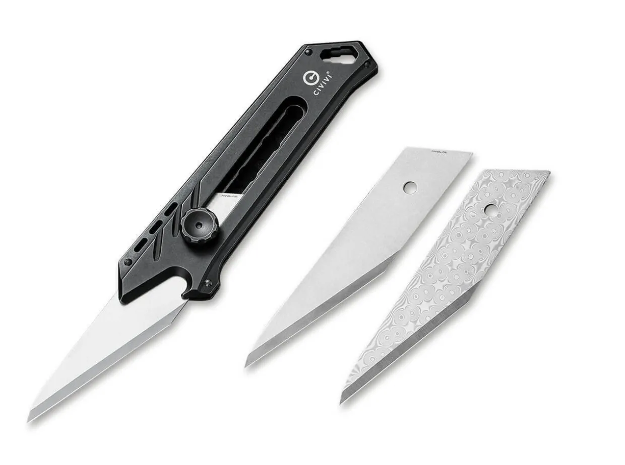 The Civivi Mandate Is A Compact Knife With An Extendable And Replaceable Blade. The Black Handle Is Made Of Milled Titanium, And Has An Easy, One-Hand Action. When Closed, The Handy Pocket Knife Can Also Be Used As A Bottle Opener. The Lanyard Hole Also Functions As A Practical Bit Holder, Which Is Compatible With Different Sizes. The Knife Comes With Two 9Cr18Mov Blades And One Damascus Steel Blade. With Clip (Tip-Down).