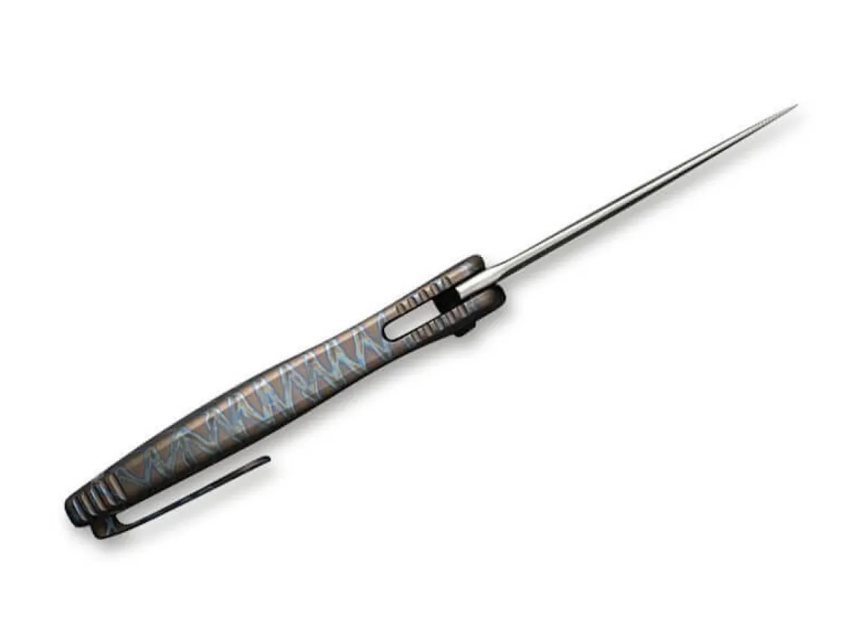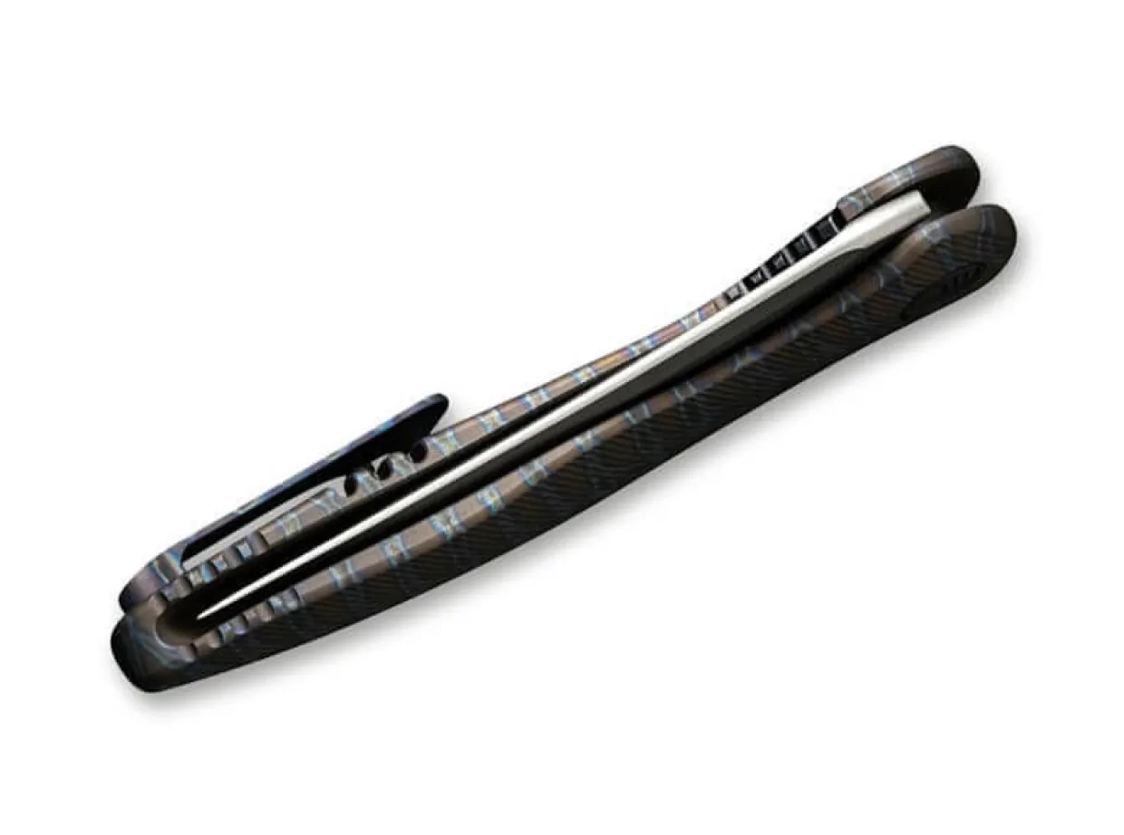 We Knife Joins Forces And Presents The Little Brother Of The Synergy. The We Knife Mini Synergy Titan Tiger Stripe Convinces With Its Clever Material Mix Of Powder Metallurgy Cpm-20Cv Blade And The High-Quality Handle Made Of Titanium In A Classy Striped Pattern. The Easy And Safe Handling Of The Knife Is Guaranteed By The Flipper Opening And The Framelock. Supplied With A Clip (Tip-Up/R) And A Lanyard Hole.
