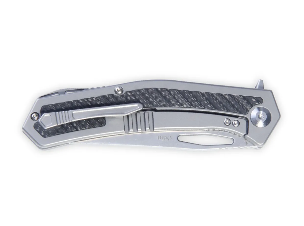 The Kizer Odin Is A Modern Pocketknife With Carbon Inserts And A Sleek Line.The Blade Is Made Of Powder-Metallurgical Cpm S-35Vn, Which Offers Excellent Edge Retention.It Opens With A Flipper Or Thumb Opening And Is Secured With A Sturdy Framelock.With A Lanyard Hole And Clip (Tip-Up).