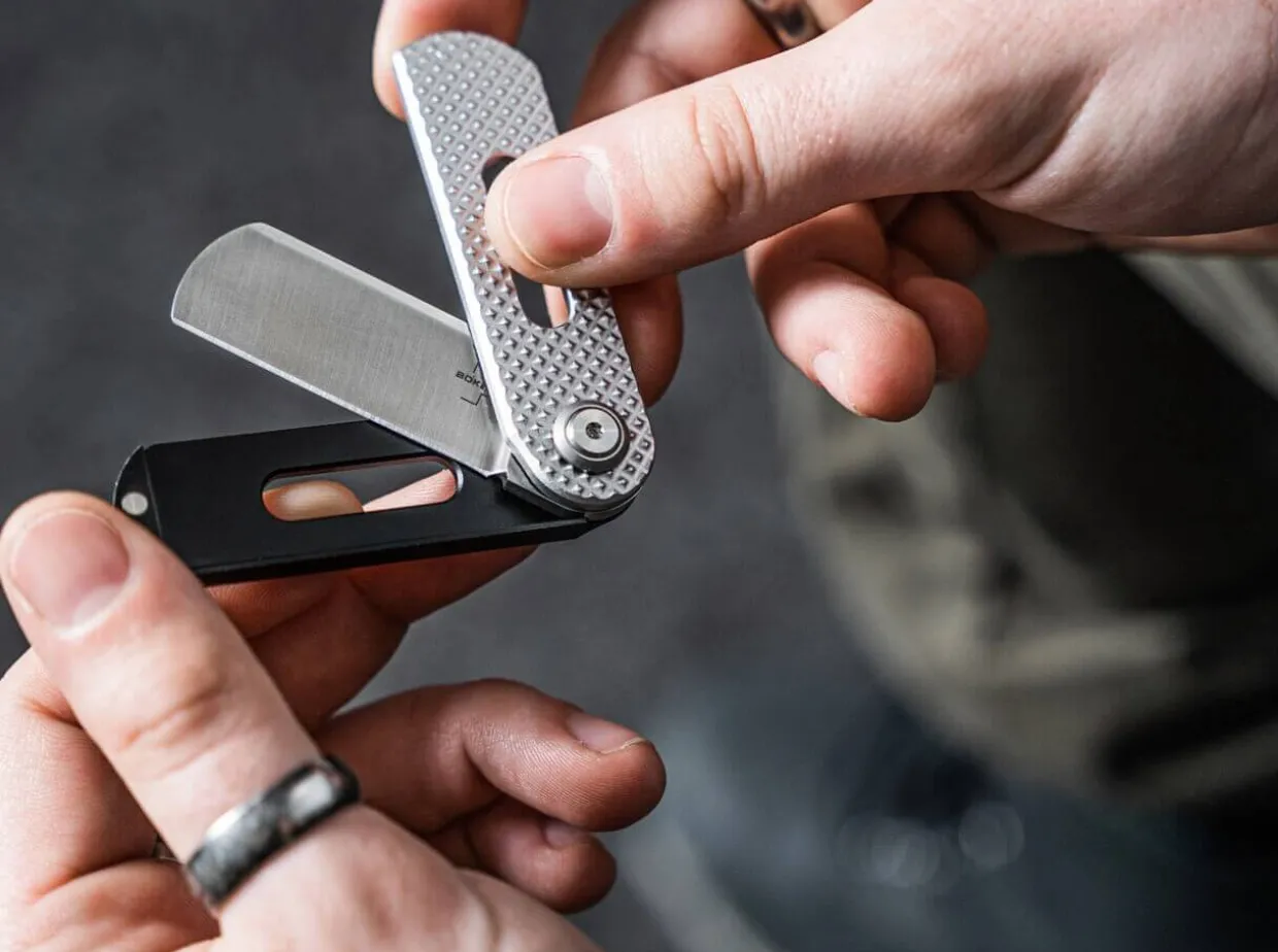 Innovation Trifft Industriellen Charme – Darriel Caston Versteht Es Immer Wieder, Charakterstarke Messer Zu Entwerfen, Die Fernab Ublicher Konventionen Auf Ganzer Linie Uberzeugen. Das Kompakte Boker Plus Ovalmoon Swivel Macht Dabei Keine Ausnahme Und Kann Selbstbewusst Von Sich Behaupten, Den Richtigen Dreh Rauszuhaben. Denn Offnen Und Schliesen Des Messers Erfolgen Durch Herumdrehen Der Beiden Griffhalften, Die Sich Am Griffende Durch Den Magnetverschluss Wieder Vereinen. Die Sheepfoot-Klinge Mit Chisel Grind Ist Aus Hochfestem D2 Gefertigt Und Eignet Sich Ideal Fur Die Kleineren Schneidarbeiten Des Alltags. Die Beiden Unterschiedlich Gefarbten Griffhalften Bestehen Aus Aluminium Und Sind Mit Einer Rutschfesten Textur Versehen, Die An Strukturblech Erinnert, Welches Oft Als Bodenplatte Im Industriesektor Zum Einsatz Kommt. Die Markante Aussparung Im Griff Reduziert Das Gewicht Und Erleichtert Die Bedienung Des Cleveren Faltmechanismus.