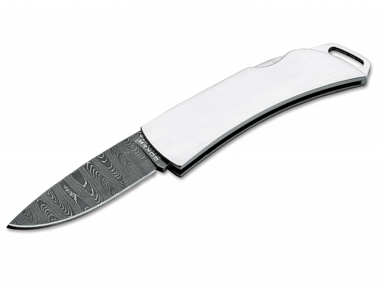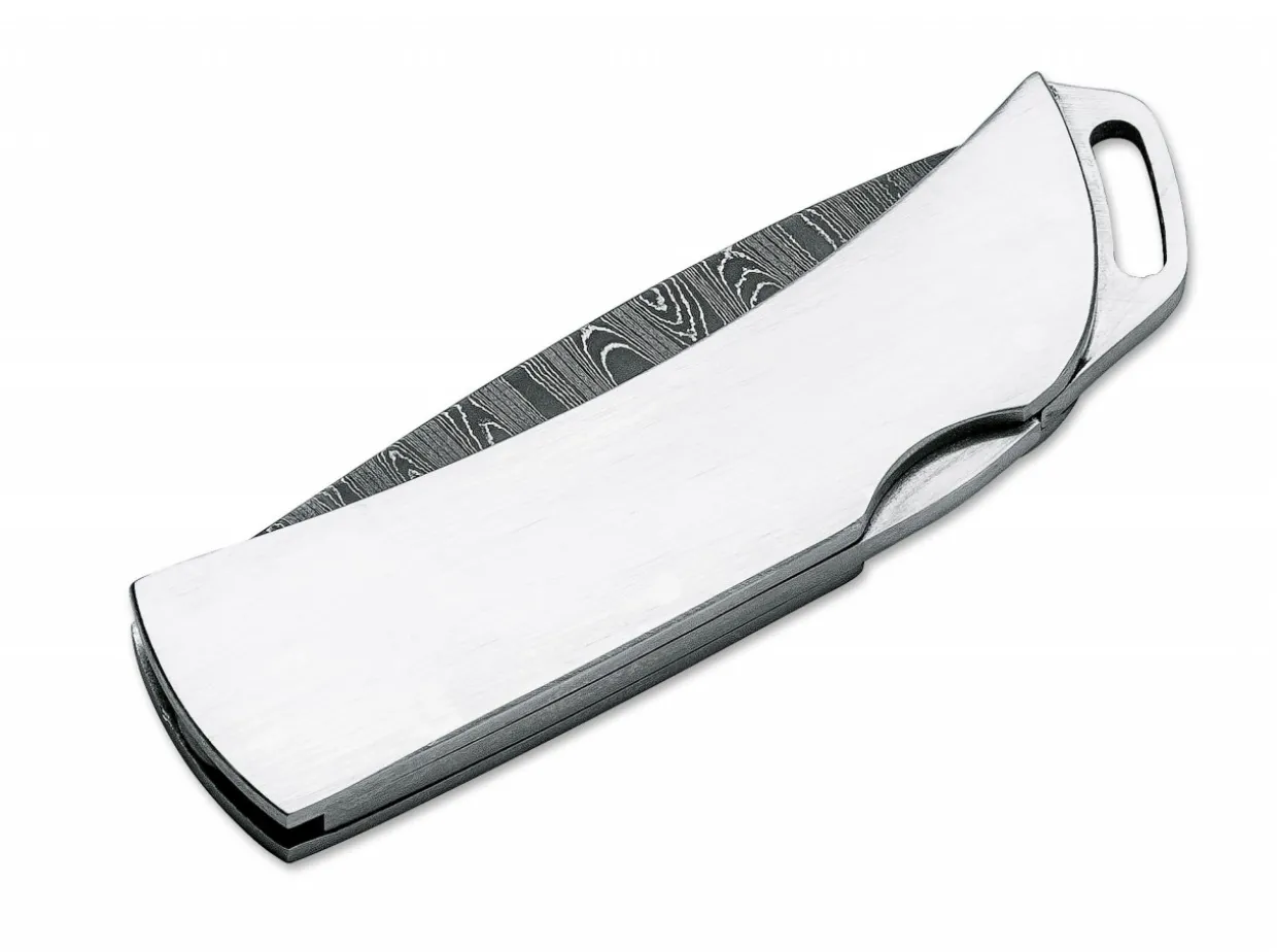 The Boker Pocket Has Always Been A Very Popular Model, As It Easily Tucks Away In The Vest Or Pants Pocket.The Especially Flat Stainless Steel Handle, Just 5Mm Thick, Now Features A Larger Lanyard Hole, Which Allows Carry On The Key Chain.This Elegant Version Features A Damascus Steel Blade, Made Of Hand Forged Stainless “Ladder” Damascus Steel By Chad Nichols. The Fine Damascus Steel Pattern Is Not Only Unique, But Also Sets A New Standard With Its Superior Edge Retention.