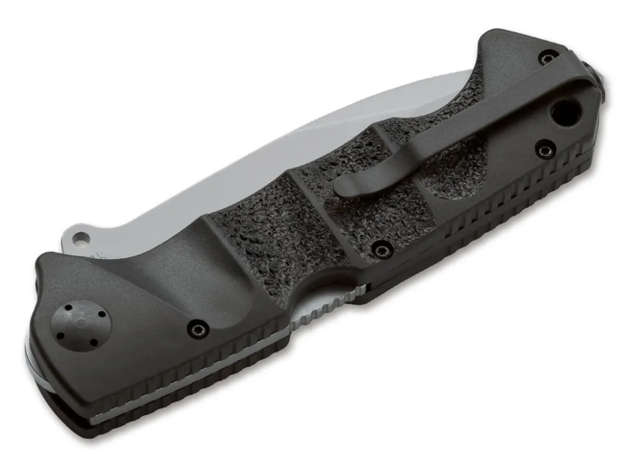 The Proven Boker Plus Rbb From Jim Wagner Is Equipped In This Variant With A Matte Blasted Recurve Blade Made Of 440C. The Blade Is Opened Two-Handed And Reliably Locked By A Sturdy Backlock. Thanks To Its Versatile Blade Shape, It Masters All Cutting Tasks Effortlessly, Whether In The Wilderness Or In Everyday Life. The Non-Slip Handle Scales Made Of Textured Synthetics Are Provided With Ergonomic Finger Recesses And Always Lie Securely In The Hand. With Glass Breaker, Lanyard Hole And Practical Deep-Carry Clip (Tip-Up/R).