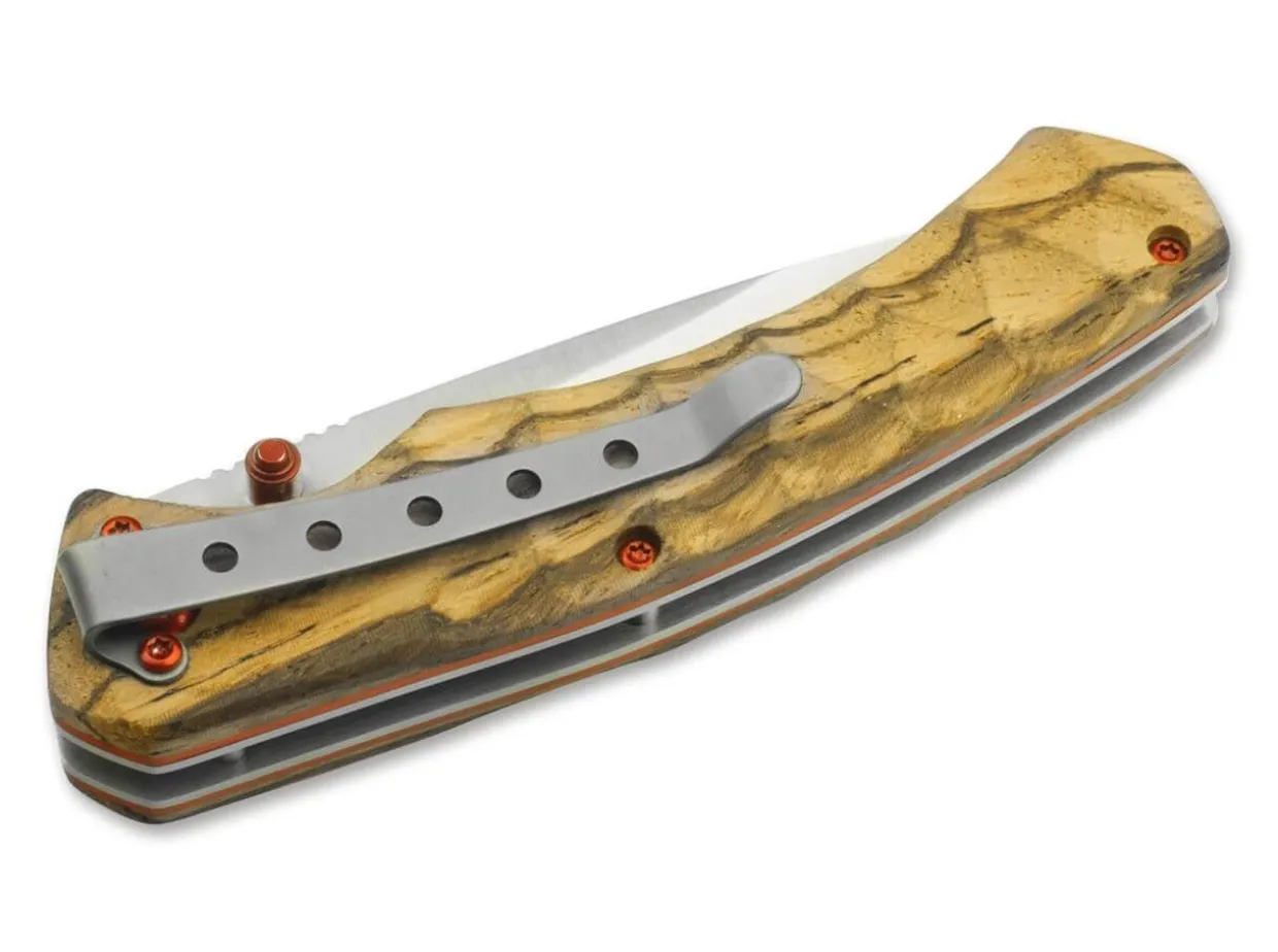 The Elegant Magnum Red Pupil Is A Shapely Pocket Knife For Everyday Use, Which Convinces With High-Quality Wooden Handles Scales And Red Colour Accents. The Three-Dimensionally Milled Scales Made Of Zebrano Wood Have Red Fibre Layers, While The Screws And The Thumb Stud On Both Sides Are Also In Red, Creating An Absolutely Harmonious Overall Picture. The 440A Stainless Steel Blade Is Locked By A Reliable Linerlock. With Concealed Lanyard Hole And Practical Deep Carry Clip (Tip-Down/R).