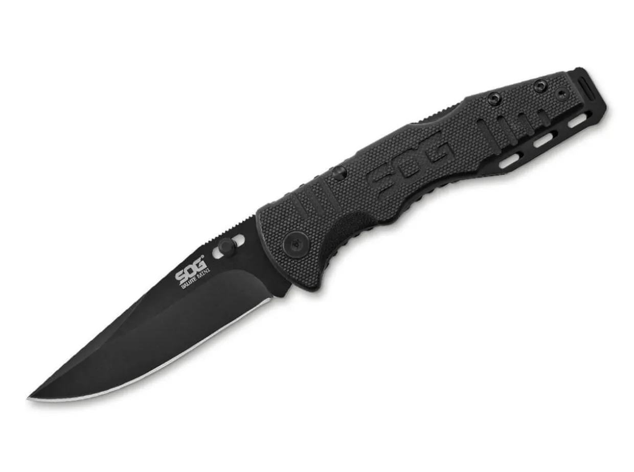 The Sog Salute Mini Is A Handy Tactical Folder Which, Thanks To Its Structured G10 Handle Scales, Lies Securely In The Hand Even In Bad Weather Conditions. The Coated 8Cr13Mov Blade Locks With A Backlock And Is Opened Using The Movable Thumb Stud. With Deep Carry Clip (Tip-Up) And Lanyard Hole.