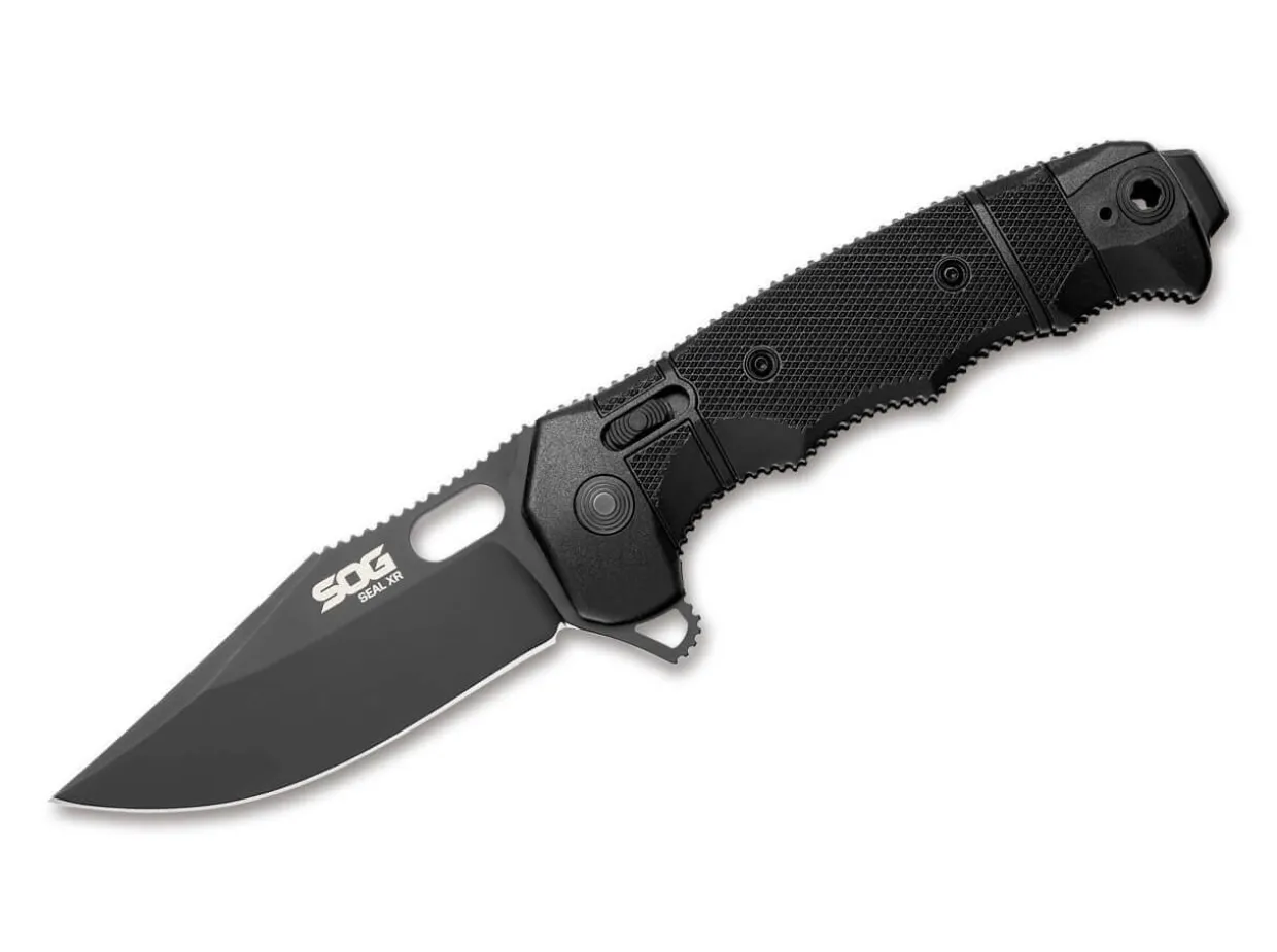 The Seal Xr From Sog Has Been Developed, Tested And Optimized In Cooperation With Professional Special Forces. The Sturdy Pocket Knife Is In No Way Inferior To The Fixed Seal Models In Terms Of Safety And Functionality And Impresses In Particular With Its High Corrosion Resistance And Excellent Cutting Durability. The Blade Is Opened By Thumb Hole Or Flipper And Locked By The Reliable Xr-Lock, Which Is Easy And Comfortable To Operate Via The Side Slide In The Handle. The Black Clip Point Blade Is Made Of Powder Metallurgical Cpm-S-35Vn And Is Provided With A Resistant Cerakote Coating. The Handle Is Made Of Non-Slip, Structured Grn And Always Lies Securely In The Hand, The Protruding End Of The Handle Is Shaped As A Hammer Surface. Additional Corrugations On The Blade And Handle Back Increase Work Safety. With Convertible Clip (Tip-Up/L-R).
