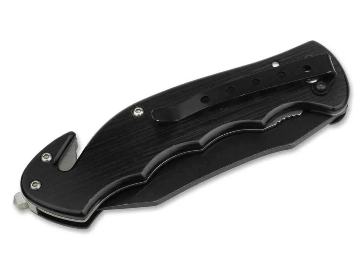 Upon Multiple Request, The Popular Rescue Knife Is Now Also Offered In A Version For Two-Hand-Opening, With A Nail Nick Instead Of A Thumb Stud. This Functional Rescue Knife Is Dedicated To The World-Famous Special Forces Of The American Armed Forces. The Black Coated Aluminum Handle Carries An Emblem With The Crest Of The Special Forces. The 440A Stainless Steel Blade Is Locked By A Linerlock Mechanism. The Drillings Give The Blade A Very Attractive Touch And Reduce The Weight. Includes A Glass Breaker At The Handle End And A Belt Cutter. These Features Make The Knife A Perfect Piece Of Your Emergency Equipment. With Clip.