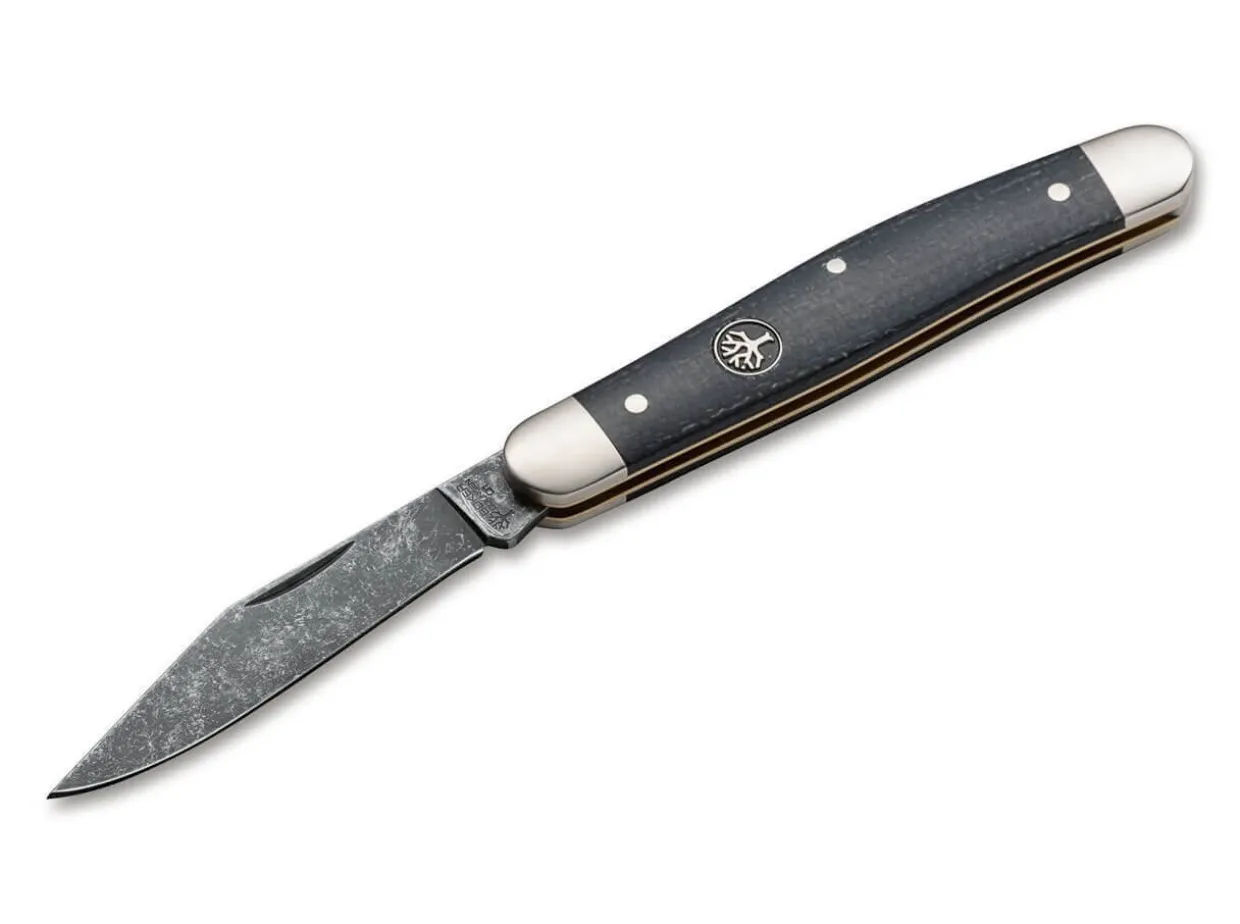 The Slim Boker Stockman Is Extremely Popular Not Only On The American Market. As A Handy Slip-Joint Pocket Knife, It Is Perfect For Everyday Use And Has Been A Fixture In Countless Trouser And Jacket Pockets For Generations. In Addition To The Scales Made Of Structured Burlap Micarta, The Stockman Is Characterised By The Use Of Brass Liners And The Carbon Steel O1 As Blade Material, Which Is Hardened To 60 Hrc. To Emphasise The Authenticity Of The Knife, The Blade Is Given A Special Acid-Wash Finish, Which Also Protects It From Harmful Environmental Influences. The Bolsters Are Made Of Nickel Silver. Handmade In The Boker Knife Manufactory Solingen.